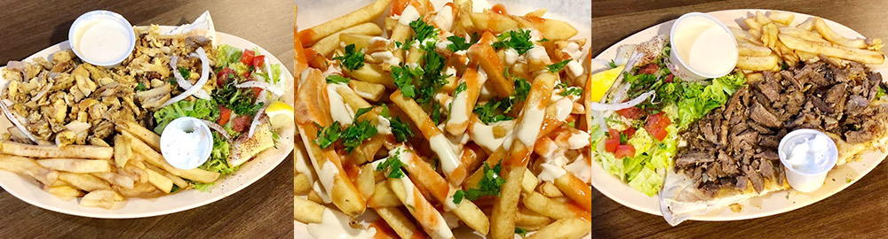 Large french fries showered with beef shawarma & topped with tahini, garlic, & parsley.
